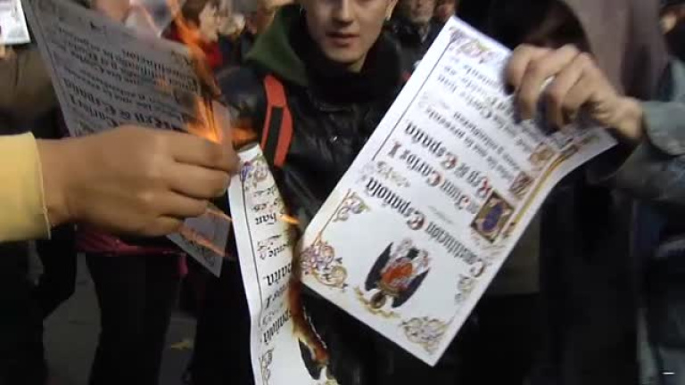 PSOE y Podemos ya han pactado la estructura de Gobierno. El presidente en funciones, Pedro Sánchez, defiende el diálogo como vía para superar el actual bloqueo político. Y en busca de apoyos para la investidura, la próxima reunión con Esquerra se celebrará en Barcelona. Una Cataluña donde hoy el independentismo radical se hacia notar con acciones como la quema de ejemplares de la Constitución y enfrentamientos con los mosos. Dos centenares de personas se han concentrado frente a la delegación del Gobierno con gritos a favor de los presos y contra la Constitución. En Barcelona los manifestantes han quemado fotocopias de la primera página de la Carta Magna.