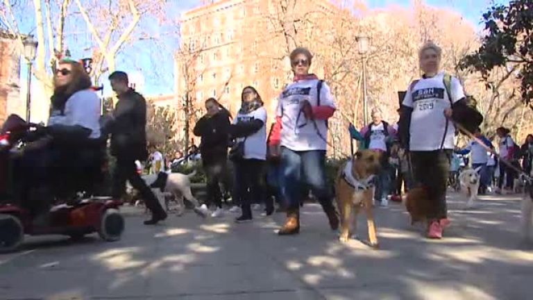 Las calles de Madrid se llenan de perros en la novena edición de la carrera 'San Perrestre', en donde personas y perros corren para pedir un endurecimiento de las penas por los delitos de maltrato animal. Bajo una pancarta con el lema 'No puede ser', han posado frente al Congreso de los Diputados para denunciar la situación.