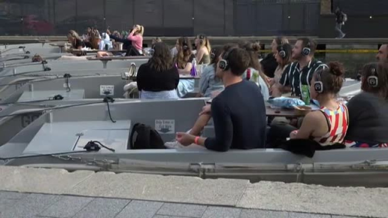 La industria cinematográfica da un paso más en Londres con un cine flotante así de original que requiere que la mayoría de su audiencia esté en barcos. En Regents Canal, en el centro de Londres, más de 100 espectadores pueden flotar, atracar y ver las estrellas en la pantalla junto al río más grande del Reino Unido. La ciudad se adapta a las medidas para frenar el virus y grupos de hasta seis personas pueden disfrutar de una buena película con unos auriculares adaptados. Los cines de todo el Reino Unido reabrieron en julio, bajo estrictas medidas como distanciamiento social y mascarilla obligatoria. Los organizadores de este cine flotante, dicen q no les queda más remedio que ser creativos pues sus ingresos. como empresas de producción, han caído un 95 por ciento.
