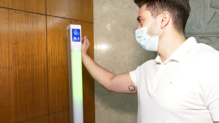 Colegio instala columna de medición de temperatura por la muñeca