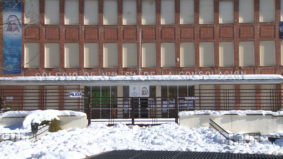 Imágenes del Colegio de Nuestra Señora de la Consolación, en Madrid, cerrado después de que la Comunidad de Madrid suspendiera la actividad lectiva el lunes y el martes por las nevadas que ha dejado la borrasca 'Filomena'.