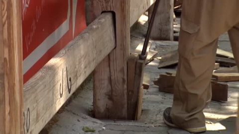 Los Sanfermines se acercan y ya se empieza a notar en las calles. Este lunes, un grupo de trabajadores de la carpintería Hermanos Aldarremi ha procedido a la instalación de las primeras vallas de madera en el callejón junto a la plaza de toros de Pamplona. Iñigo Aldaz, uno de los encargados de la colocación de vallado, ha confirmado que hoy también comenzarán a trabajar en el corral de Santo Domingo. Una labor que acabarán definitivamente el día 6 de julio.