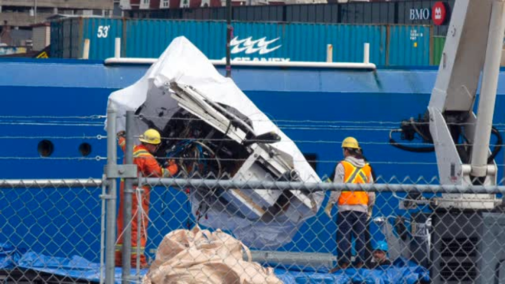 Video AP LaPresse/ agencia Atlas.- Los restos del TITÁN, el sumergible siniestrado con 5 personas en su interior, regresan a tierra después de su implosión. Los trozos rescatados del fondo del océano, cerca de los restos del Titanic, se descargan ya en el muelle de la Guardia Costera de Canadá.