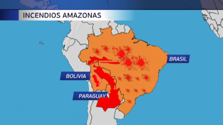 La preocupación por el desastre ecológico del Amazonas ha llegado hasta la reunión del G7, que ha acordado el envío de ayuda internacional a la mayor brevedad. La situación en la zona, con más de mil incendios, sigue sin control y las llamas han alcanzado ya los vecinos Bolivia y Paraguay. Se calcula que ya se han quemado más de un millón de hectáreas.En tiempo récord la selva amazónica se consume. El fuego avanza a mucha velocidad. En los últimos días se ha duplicado la zona devastada. A la carrera, los bomberos se la juegan para evitar que alcance dimensiones incontrolables. En otros casos, es tan compleja la extinción que se dan por vencidos. Las llamas se acercan peligrosamente a las aldeas. La gente abandona sus casas con lo puesto. Situación de emergencia por la que el presidente de Bolivia se abre a recibir ayuda internacional. En Brasil, no mejora la previsión. Más de mil nuevos incendios mantienen a seis estados ardiendo y se han desplegado 44.000bmilitares. Las calles de la capital de Bolivia y de Rio de Janeiro también se han incendiado para pedir una respuesta. Porque en Brasil los fuegos se han disparado más de un 80% por el drama de la deforestación. 200 años es la cifra que se marcan los más optimistas para recuperarse de este desastre medioambiental que está siendo el eje central del G-7. Francia propone un fondo internacional cuanto antes y un plan para reforestar las zonas arrasadas.