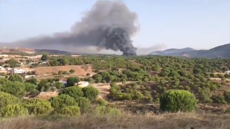 Continúa con dos focos activos el incendio declarado en el término municipal de Nerva, en Huelva. Aunque por el momento no se esperan desalojos en las inmediaciones de la zona afectada.