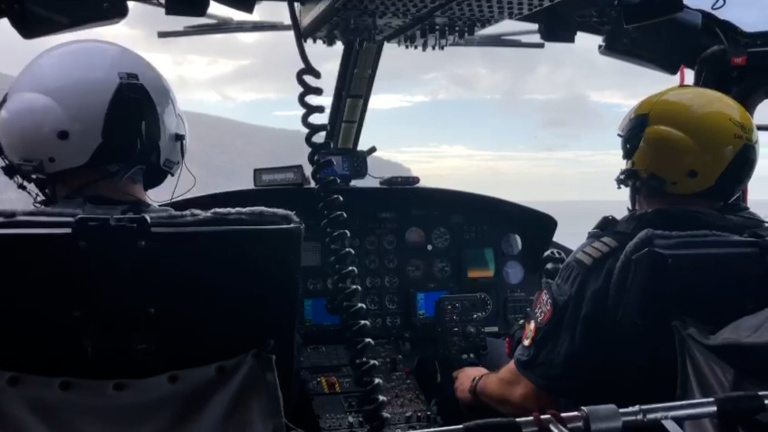 Imágenes de helicópteros del GES que intervienen en tareas de vigilancia y traslado de equipos de emergencia. En estos momentos, una técnico del Instituto Geológico y Minero de España (IGME), junto a la Dirección General de Seguridad y Emergencias, sobrevuelan la zona para evaluar la situación.
