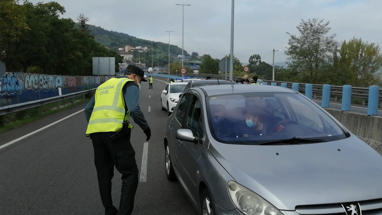 Imágenes del control policial en el acceso centro de la Autovía A52 a la ciudad de Ourense, en confinamiento perimetral.