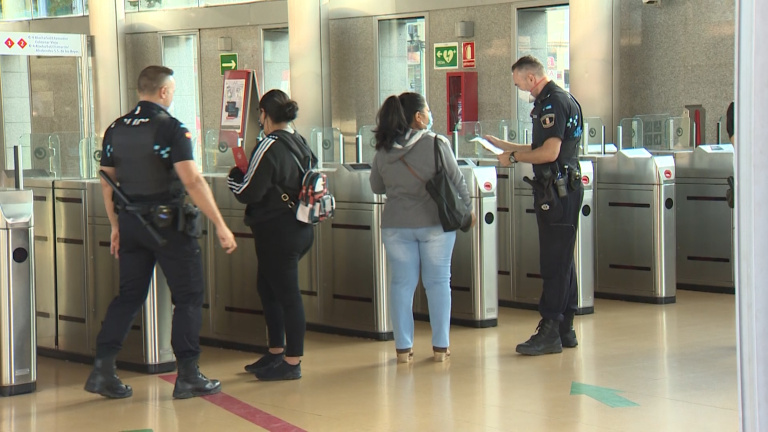 Control policial en el cercanías de Parla, Madrid