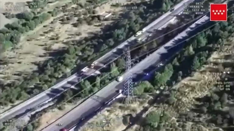 Imágenes de 112 Comunidad de Madrid que muestran la A1 a la altura del km. 94 de Somosierra, donde los Bomberos de la Comunidad de Madrid han dado por controlado un incendio.
