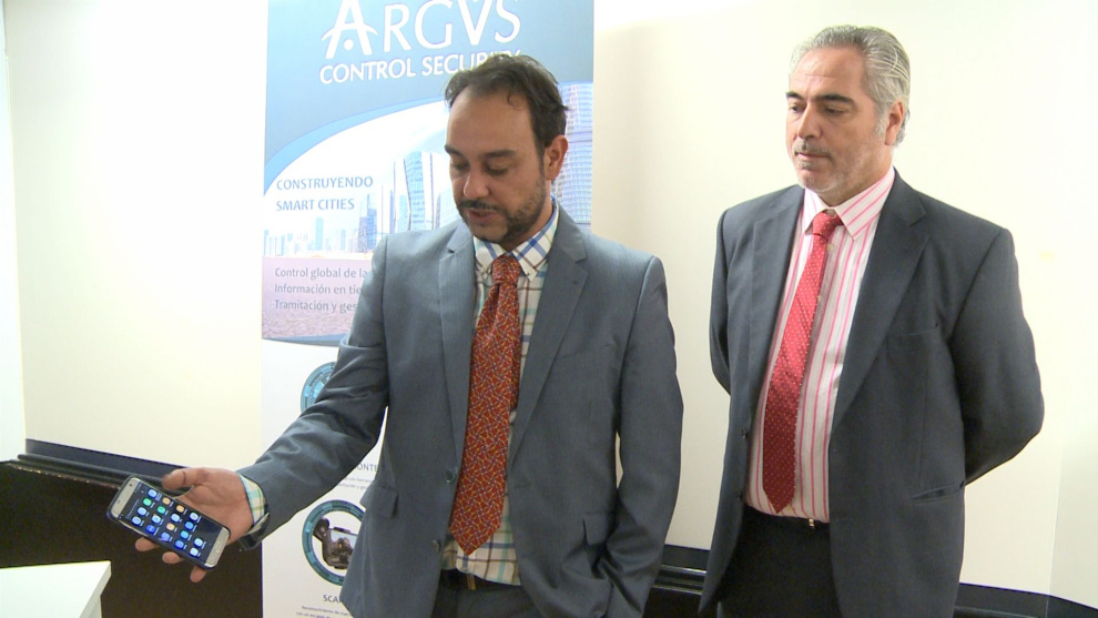 Imágenes de Argus CVG, un sistema de protección inteligente para combatir la violencia de género, que consiste en una APP que se instala en el móvil de la víctima pero que es indetectable porque no lleva ningún icono. Se activa pulsando una tecla del teléfono, sin necesidad de desbloquearlo, y la aplicación envía una alarma, imperceptible para el atacante, a los agentes policiales más próximos.