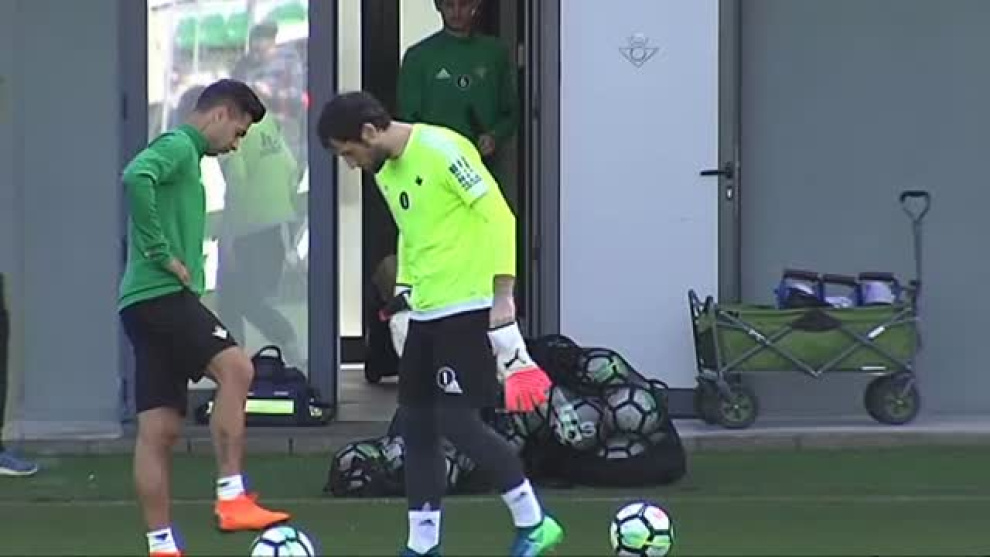 Antonio Adán estará de baja lo que resta de temporada tras pasar por quirófano este jueves, y su puesto en el Betis lo ocupará Dani Giménez. El portero suplente que tras cuatro años en el equipo verdiblanco ha jugado tan sólo cuatro partido de Liga. Giménez ha sido hoy el foco de todas las miradas durante el entrenamiento. En sus manos está que el equipo pueda estar en Europa la temporada que viene.