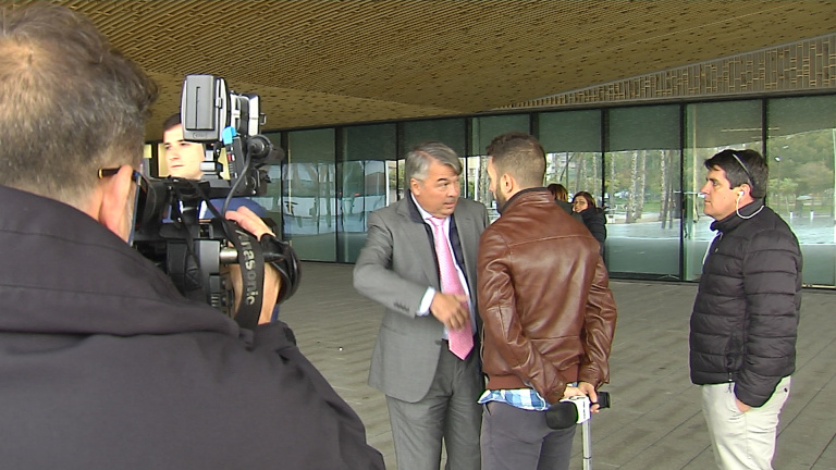 Imágenes del abogado defensor de los integrantes de 'La Manada', Agustín Martínez, a la salida de la Ciudad de la Justicia de Córdoba tras la tercera sesión del juicio por supuestos abusos sexuales a una joven en Pozoblanco (Córdoba).