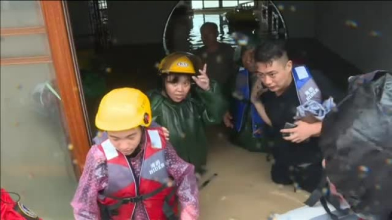 Lekima sigue su carrera destructiva y mortal por el este del país. Los efectos asustan: 5 millones de afectados por su gran impacto. Al menos un millón han tenido que abandonar sus casas con lo puesto. Ha caído tanta agua en tan poco tiempo que los ríos no pueden asumir el caudal. Sus desbordamientos han arrasado poblaciones enteras. Y los deslizamientos de tierra han engullido carreteras y decenas de viviendas. El resultado, 44 fallecidos y decenas de desaparecidos. Cientos de militares peinan cada palmo en busca de supervivientes entre los escombros. Los vientos de cerca de 200 kilómetros hora han derribado árboles, casas y el tendido eléctrico. 3 millones de hogares se han quedado sin luz. Moverse por el este del país es una carrera de obstáculos. Y los aeropuertos están saturados tras la cancelación de casi 300 vuelos. Los rescatistas salvan in extremis a quienes tienen el agua casi hasta el cuello. Esta familia es rescatada de la peligrosa corriente con cuerdas. Aquí emplean un montacargas para poner a salvo a una mujer embarazada. Vean esta niña subida a una mesa. Debajo, una rata aferrada también a la vida. El fenómeno ha sido bautizado ya como el peor tifón que asola China en los últimos cinco años.