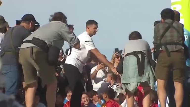 El Dibu Martínez, indiscutible en la portería de la Argentina campeona del mundo y héroe en los penaltis de la final contra Francia, se ha convertido en todo un ídolo en su ciudad natal, Mar del Plata, donde fue recibido por cerca de 100.000 personas con el mar como fondo. El jugador, cuya imagen tras recibir el premio a mejor guardameta del torneo ha dado la vuelta al mundo, se dirigió a sus conciudadanos para agradecerles su apoyo y expresar su orgullo por haber logrado la tercera estrella para la albiceleste.