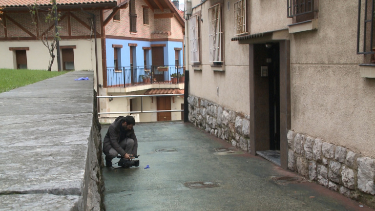 Imágenes del exterior de la vivienda donde un hombre de 24 años de la localidad vizcaína de Santurtzi ha apuñalado presuntamente a su pareja sentimental, de 51 años, y al hijo de ésta, de 28 años. Éste último es el que ha sufrido más heridas.