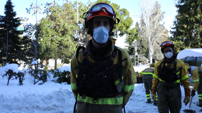Declaraciones de Eduardo Serrano, efectivo de la BRIF de Puerto del Pico, Ávila, quien explica los trabajos que están realizando en las calles de Madrid con los instrumentos que suelen utilizar para la extinción de incendios.
