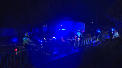 Imágenes de efectivos de la Policía Nacional llegando al cementerio de El Pardo-Mingorrubio para garantizar la discreción de la inhumación del dictador Francisco Franco.