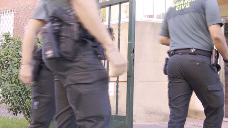 Imágenes de efectivos de la Guardia Civil y de la Policía Municipal de Castro Uridiales (Cantabria), acotando la calle en la que convivían el hombre decapitado y su mujer.