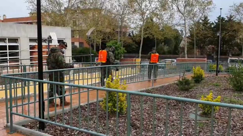 El Ejército desinfecta en Sabadell (Barcelona)