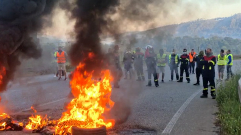 Imágenes del comité de Alcoa, que ha protestado este viernes con hogueras ante el anuncio de despidos.