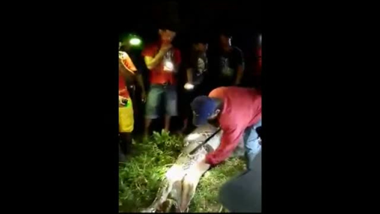 Este grupo de hombres encontró en la jungla a una pitón de siete metros con un estomago sobredimensionado. La sospecha de lo que había en su interior les hizo actuar. Al cortar el estomago del animal, el mal presentimiento se hacía realidad. La pitón había ingerido a un hombre de 25 años. La joven víctima estaba trabajando en una plantación de palmeras cuando desapareció, al cabo de 24 de horas encontraron a la culpable en los alrededores. La pitón es una serpiente constrictora que oprime a su víctima hasta la muerte antes de tragarla, y tal parece que en este caso el joven indonesio fue su última captura.