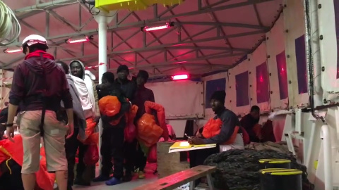 Imágenes de varios refugiados e inmigrantes en el barco 'Aquarius' en el que el equipo de MSF está tratando muchos casos de mareo debido a las condiciones climáticas en el Mediterráneo, que empeoraron durante la noche, durante terribles viajes desde sus países de origen.