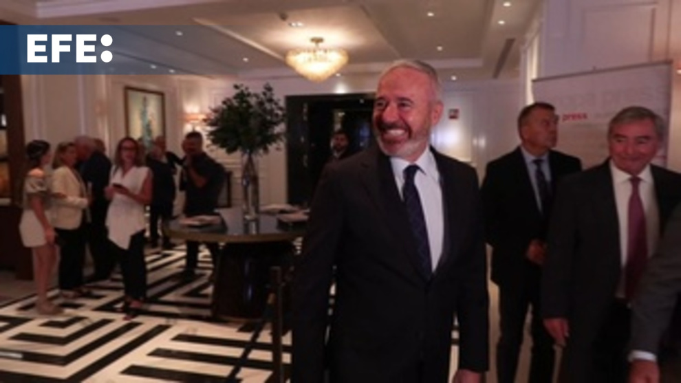 Madrid, 3 sep (EFE).- El presidente de Aragón y del PP en la comunidad, Jorge Azcón, participa en un desayuno informativo en Madrid, presentado por el líder del PP, Alberto Núñez Feijóo.
