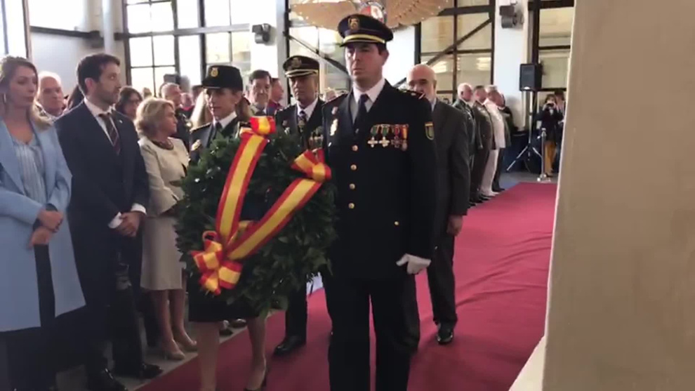 Imágenes de la ofrenda floral realizada a los policías caídos en acto de servicio en el acuartelamiento de Basauri (Bizkaia), con motivo de la Festividad de la Policía Nacional.