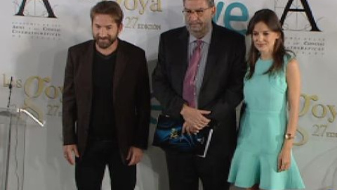 Los actores Elena Anaya y Antonio de la Torre han sido los encargados de leer la lista de los finalistas a los Premios Goya 2013 en la sede de la Academia de Cine.
