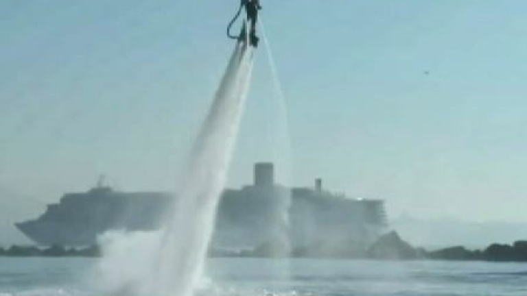 El 'flyboard' se está poniendo de moda en Cataluña y en otras costas españolas y de todo el mundo.Consiste en sobrevolar las olas a diez o doce metros de altura propulsado por dos potentes chorros de agua.