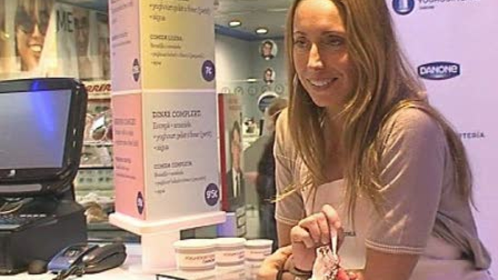 Gemma Mengual aparece, por primera vez tras su maternidad, para inaugurar una nueva yoghourtería de Danone. La deportista ha asegurado que está encantada con su hijo.