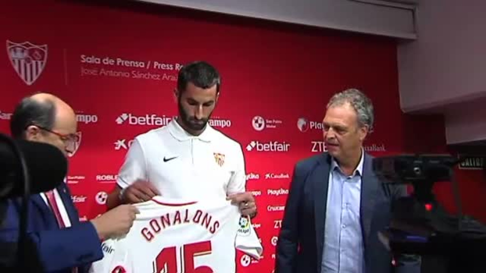 El centrocampista francés Maxime Gonalons ha sido presentado esta tarde en el Estadio Ramón Sánchez-Pizjuán como nuevo futbolista del Sevilla FC. En su primera rueda de prensa como sevillista, el ex de la Roma ha estado acompañado por José Castro, presidente de la entidad, y por Joaquín Caparrós, Director de Fútbol del Sevilla. Gonalons ha afirmado "estar preparado físicamente para debutar" cuando el entrenador así lo desee. Por otro lado, Caparrós ha querido hacer hincapié en que su equipo tiene la "mejor plantilla y cuerpo técnico" de la categoría.