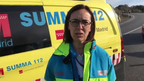 Declaraciones de la jefa de Guardia de SUMMA112, Pilar López, quien habla sobre el accidente de moto en el kilómetro 14 de la carretera M513, en Brunete, en el un varón de 38 años se ha salido de la vía y ha entrado en parada cardiorrespiratoria. A pesar de las maniobras de reanimación se ha confimado su fallecimiento, ya que sufría graves lesiones.