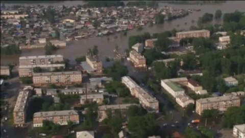 Las imágenes de la ola de calor en Europa, contrastan con estas otras. Son las graves inundaciones que están sufriendo en el suroeste de Rusia. Un panorama, que desde el aire resulta desolador. Los equipos de emergencia trasladaban así a un grupo de niños a una zona segura tras ser desalojados. Sin embargo, algunos residentes se niegan a abandonar sus casas y muestran los efectos devastadores de las fuertes lluvias. Precisamente para frenar el avance del agua, estos camiones echan arena en puntos estratégicos. Más de 2.300 hogares han quedado anegados y también se han inundado 16 tramos de carreteras y 13 puentes. La clave está ahora en el cielo. Se espera que la situación meteorológica mejore en las próximas horas.