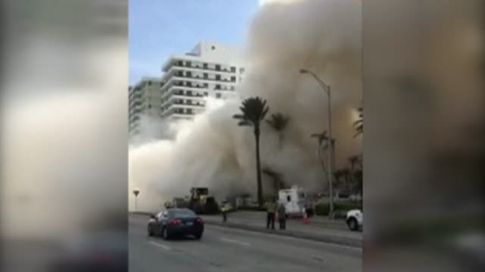 Un edificio de Miami Beach (Florida) se ha ido literalmente abajo. La torre de doce pisos iba a ser demolida para construir apartamentos de lujo y estaba programada su demolición parcial, pero algo salió mal y se derrumbó por completo. Parte de los escombros cayeron encima de un trabajador que se encontraba en las inmediaciones de la obra. El hombre fue trasladado al hospital, donde se encuentra en estado grave. Toda la zona permanece cerrada al tráfico tras el derrumbe que provocó una inmensa columna de polvo.