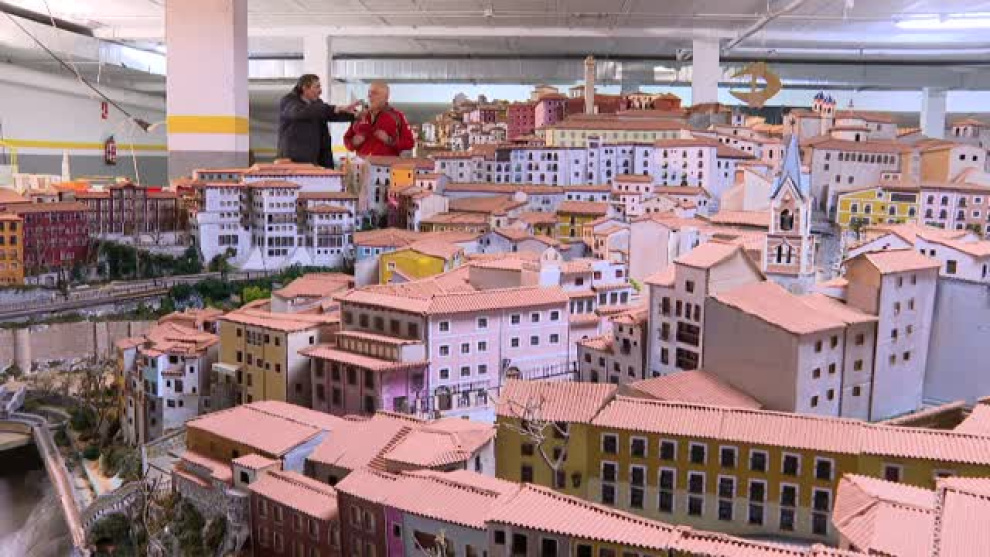 A Juan Carlos Evangelio le cedieron un aparcamiento subterráneo para seguir construyendo su gran obra porque su casa ya se le quedaba pequeña. Y calle a calle ha ido levantando en el garaje en cartón y madera con asombroso detalle su ciudad de Cuenca. Son horas y horas de cariño y dedicación para más de 400 fieles edificaciones.