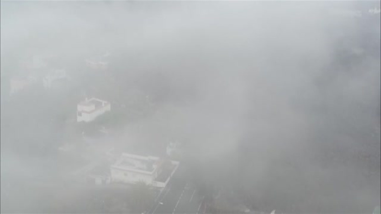 El lomo de la colada es una criatura humeante que se vuelve indescifrable, cuando el dron se acerca demasiado a algunas zonas. Hay que tomar de nuevo altura, para divisar los detalles del recorrido. Aquí observamos bien la presencia, cada vez más cercana, del océano. Con la manga izquierda de la lava amenazando también la montaña. Este otro dron, la muestra desde aún más cerca, con una amplia zona de invernaderos en la posible trayectoria. Justo al otro lado, más al este, estructuras similares sufren ya la mordida constante de la lava. En las zonas donde no avanza, de momento, se aprecian edificaciones a medio destruir, con sus tejados cubiertos de materia volcánica. El humo más oscuro surge cuando la lava toca toda clase de materiales, es mucho más blanco, cuando entra en contacto con los depósitos de agua. Al fondo sigue saliendo humo del cráter principal. Estas son nuevas imágenes de las horas en las que su actividad se volvió más violenta con sucesivas explosiones y un camino nuevo de lava que comenzó a circular rápidamente, sobre la ya aposentada.