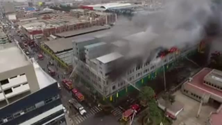 Impresionante incendio en un centro comercial de Lima, en Perú. Al menos 17 personas han resultado heridas a consecuencia del fuego y se cree que al menos cuatro personas habrían podido quedar atrapadas en el interior del edificio. Todavía se desconoce si hay víctimas mortales. Las llamas comenzaron en la segunda planta y en cuestión de minutos se propagaron rápidamente por el edificio formando una enorme columna de humo. Más de 300 efectivos de bomberos han estado trabajando sin descanso para intentar controlar el incendio.
