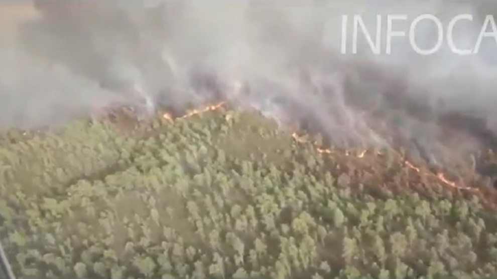 Imágenes del incendio declarado en la localidad de Almonaster La Real, en la provincia de Huelva, donde han sido movilizados más de 200 efectivos para ayudar a su extinción.