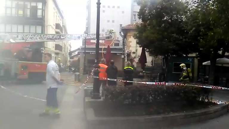 Imágenes de bomberos sofocando un incendio en un bar de Algorta, en Getxo (Bizkaia).