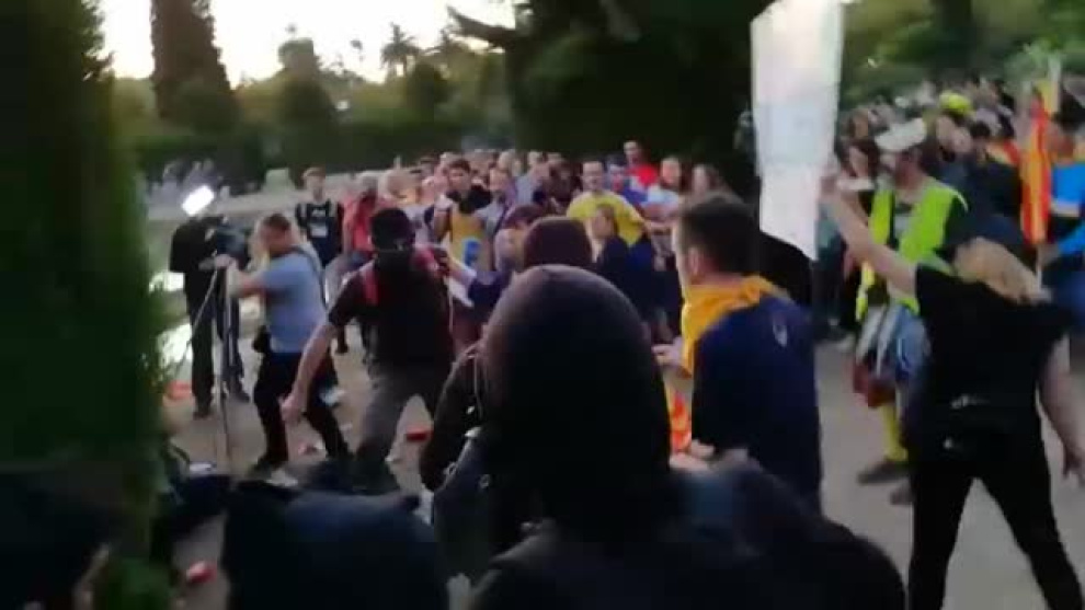 Radicales encapuchados arrancaron anoche adoquines para lanzarlos a la policía y derribaron las vallas de seguridad para tratar de tomar el Parlament. Hasta la emprendieron contra periodistas de TVE y Antena3. Tensión que los Mossos zanjaron con apenas dos identificados mientras en otra parte de la ciudad el Gobierno catalán convertía el acto institucional de la Diada en un acto en favor de los presos y la independencia. La alcaldesa de Barcelona no ocultó su incomodidad junto a Quim Torra. Era el fin de una Diada multitudinaria aunque la menos numerosa de los últimos años. Un reflejo de la falta de unidad en el independentismo. Los concentrados la reclaman ante la inminente sentencia del "procés" pero Esquerra y Junts per Cat difieren en la estrategia. Los republicanos quieren responder con elecciones anticipadas pero esa es una solución que rechaza el presidente Torra.