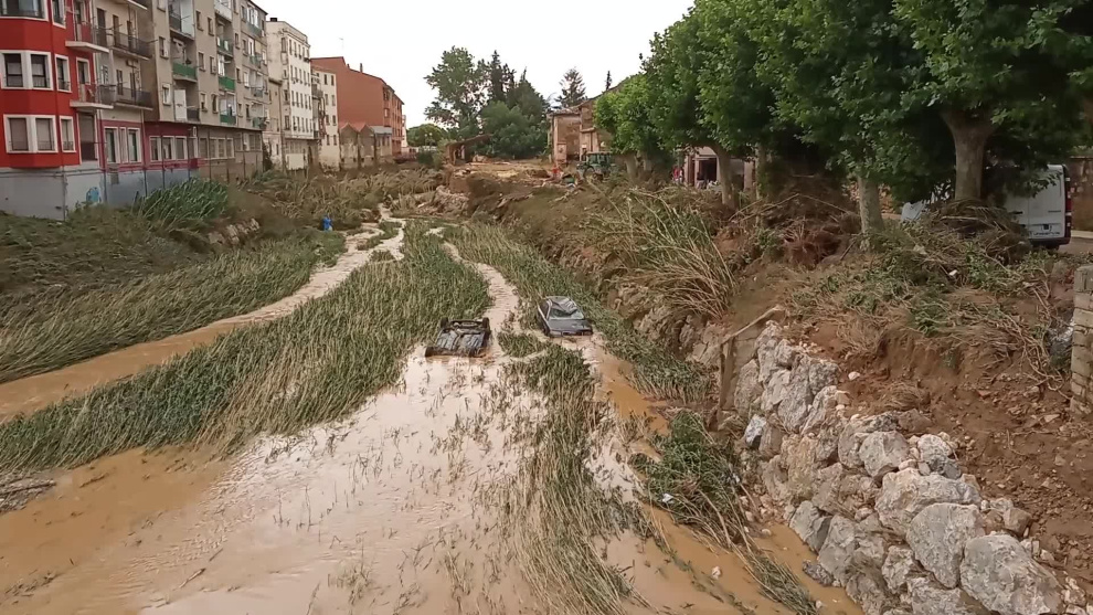 Imágenes de las inundaciones registradas en Tafalla (Navarra).