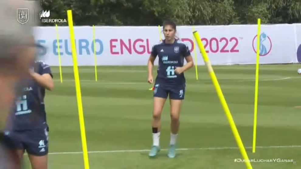 Penúltimo entrenamiento de la selección española de fútbol femenino antes de jugar el tercer partido de la fase de grupos de la Eurocopa de Inglaterra. Las jugadoras de Jorge Vilda se enfrentan este sábado por la noche en el Brentford Community Stadium a Dinamarca. Un empate en dicho encuentro sería suficiente para avanzar a la siguiente ronda de la EURO. Si España consigue clasificarse, la selección anfitriona, Inglaterra, nos espera en los cuartos de final.