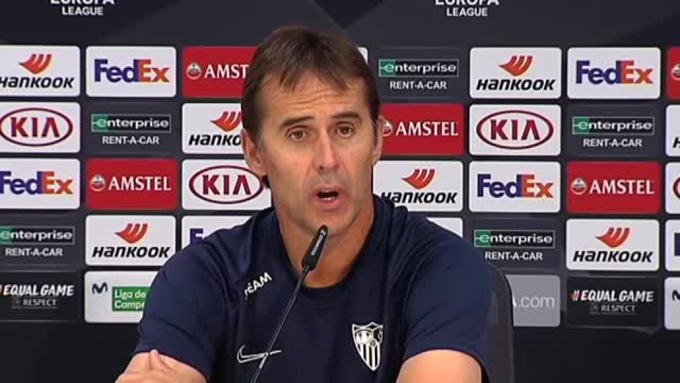 Tras el entrenamiento preparatorio del Sevilla en su ciudad deportiva, Julen Lopetegui ha prestado declaración a los medios. El míster se ha encargado de destacar la dificultad del partido frente al Apoel, pese a la insistencia de los medios. Además, ha confirmado la ilusión que tiene el equipo hispalense por esta competición europea, que ya ha ganado 5 veces.