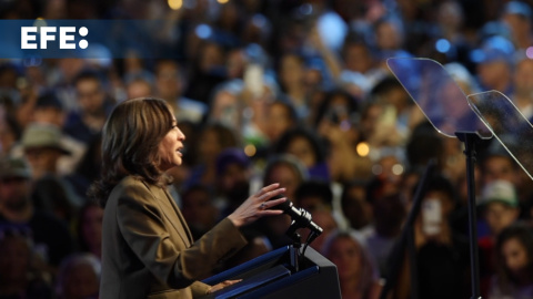 Las Vegas (Estados Unidos), 30 sep (EFE/EPA).- La candidata presidencial Kamala Harris, habla durante un mitin de campaña en Las Vegas, Nevada, Estados Unidos, este 29 de septiembre de 2024.