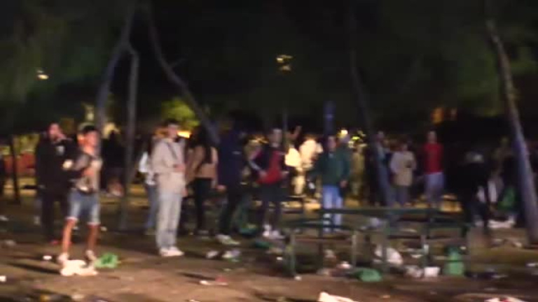 Lanzamiento de objetos a la Policía en un macrobotellón fuera de control en Madrid