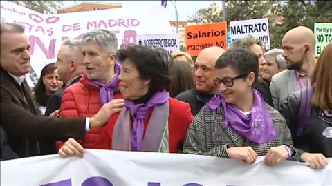Miles de personas han salido a la calle en Madrid para participar en la gran manifestación convocada con motivo del Día Internacional de la Mujer. Entre los asistentes, ministras y ministros socialistas y la propia esposa del presidente del Gobierno. Por su parte, Irene Montero también ha participado en la marcha tras la pancarta de Podemos. Montero ha restado importancia a las discrepancias en el seno del Ejecutivo para sacar adelante la Ley de Libertad Sexual y ha agradecido a Pedro Sánchez su "valentía y convicción". Por su parte, las representantes de Ciudadanos han vuelto a recibir insultos y han tenido que sortear a un grupo de manifestantes que les impedía avanzar en su marcha.