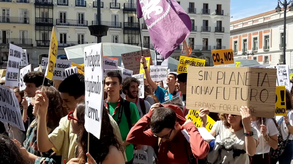 Manifestación de 'Fridays for Future' en Madrid por la huelga global por el clima del 24 de mayo, que pide caminar hacia la sostenibilidad del planeta.