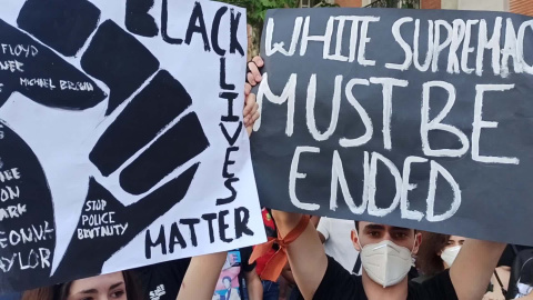 Varios miles de personas se han manifestado contra el racismo ante la embajada de Estados Unidos en Madrid.