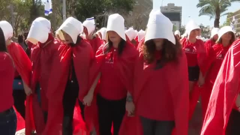 Son mujeres israelíes protestando contra el gobierno de Netanyahu. Y lo hacen vestidas como los personajes de "El Cuento de la Criada". Quieren denunciar la opresión que sufren."Es un símbolo rojo de las cosas que nos dan miedo, no porque pensemos que ahora somos criadas, sino que es una muestra de lo que tememos que nos podemos convertir", señala la activista Moran Zer Katzenstein.Muchas mujeres ven en el proyecto del gobierno de socavar la independencia del poder judicial una oportunidad de recortar los avances en igualdad de género. Por eso se han identificado con las protagonistas de una distopia que cada vez ven más cerca.